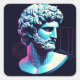 A classical bust, set against a backdrop of digital grids and vivid hues, captures the retro-futuristic essence of the vaporwave movement.