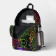 Kick off your back to school in style with this funky, super cool Neon Reptile backpack. This fun, stylish custom backpack features a very bright and colourful snakeskin design on a black background. A monogram initial text template is included - use it to personalize your bag or remove it, the option is yours. This backpack also has a black colour block strip at the top of the front pocket, complimenting the monogram. Feel free to change these to suit your style!