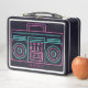 Custom lunch box with a neon retro cassette player and radio design in pink and green tone blue colours. Personalize it with a name or any custom text. Ideal as a lunchbox, timeless keepsake, utility box, or display decor. Double-sided with the same design.
