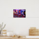 Neon Retro Diner Black White Chequered Poster. Bright Neon Blue Red lights with black and white chequered patterns and red bar stools.