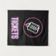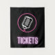 Neon purple "Tickets" text with neon retro style mic silhouette on black background makes this a great design for a variety of events from live music events to singing competitions