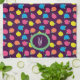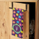 Stylized roses in bright neon pink, blue, yellow, and coral with neon green leaves are spangled across a deep purple background to create a fun floral pattern. Customize the monogram on this towel with your initials to make it uniquely your own.