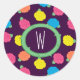 Stylized roses in bright neon pink, blue, yellow, and coral with neon green leaves are spangled across a deep purple background to create a fun floral pattern. Customize the monogram on this sticker to make it uniquely your own.