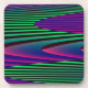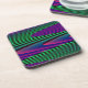 This awesome cork coaster.features a digitally created image that resembles a series of gentle waves rippling against a calm shore. The waves are vivid neon shades of green, pink and blue and have a 3D quality.