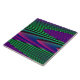 This awesome tile features .a digitally created image that resembles a series of gentle waves rippling against a calm shore. The waves are vivid neon shades of green, pink and blue and have a 3D quality.