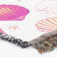 A vibrant seamless pattern of pink-orange seashells, starfish and dots on a deep dark base. High-contrast “neon” glow for a bold summer, tropical and coastal vibe. Designed to repeat cleanly and stay crisp on both small and large surfaces. Works beautifully with black, aqua, teal or sandy backgrounds.