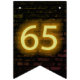 Illuminated marquee neon sign on grungy dark brick for 65th birthday party.