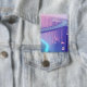 Neon pink and cobalt bridge arcs over a luminous chasm with a shimmering river, blending sci fi wonder with dreamlike surrealism and a bold cyber glow.