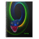 Cool abstract neon snake school spiral notebook, with a blue head and yellow eyes, against a black background. Personalize the neon green text to suit your needs. Great for back to school.
