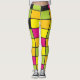 A fun chequered board like pattern of bright neon colour squares in pink, green, yellow, orange and black with black borders on fun leggings!
