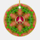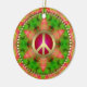 Groovy golden peace sign customizable ceramic ornament in neon green, orange and pinks - made from geometric fractals design. Each side has its own unique energy output. Makes a great personalized gift idea ~ keepsake gift  ~ decorate and hang this positive happy energy ornament in your home or office!