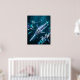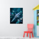 A sleek neon swordfish races through futuristic ocean depths, built from chrome scales, glowing propulsion lines, illuminated fins, and a razor-sharp energy blade. Electric blue, cyan, violet, and silver light streaks across its streamlined body, capturing pure speed and elegance. Tunnels of light, glowing reefs, bubbles, motion trails, suspended particles, and deep dark water enhance the cinematic rush. This premium marine design is perfect for offices, gaming rooms, coastal interiors, and collectors who love dynamic ocean creatures.