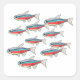 Neon Tetra design shows a school of swimming neon tetras. Hand drawn graphic of this popular tropical aquarium fish for fans and keepers.