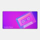 Une cassette audio rétro 90s en néon, couleurs vaporwave, violet, rose, bleu.