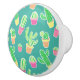 Neon Watercolor Cactus In Pots Pattern Ceramic Knob