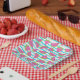 Neon watermelon slices and seeds on cyan blue stripes. | © and ® Bigstock® - All Rights Reserved.