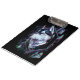 A stunning digital painting of a wolf’s face, rendered with vibrant neon blues, purples, and pinks against a dark, abstract forest backdrop. The glowing, high-contrast style gives the wolf an intense, almost supernatural presence — perfect for edgy wall art, album covers, or apparel that blends nature with cyberpunk energy.