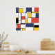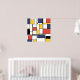 Neoplasticism style abstract art. Digital painting of black lines and red, blue, yellow, black and white rectangles. Made from the scratch. Good to decorate an office or a home wall.
