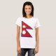 The front of this t-shirt boldly displays the Nepalese flag with its distinctive white symbols on an ireegularly shaped red background with blue border. This is matched at the back by an attractive map of Nepal.