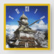 Wall Clock: Mountain peaks of Ama Dablam & Buddhist Stupa with tip of Everest hiding in clouds. One of the mesmerising views on mountain scenery enriched by an iconic ancient stupa with blue sky above is all composed in this picturesque Himalayan landscape showcasing some of the highest peaks in the world. Views from Everest trail in Nepal's Sagarmatha National park. Original Photography/Art/Design by work4dream.