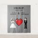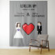 This fun and geeky, yet simple and chic backdrop features a bright red 8-bit heart and names of bride and groom and 8-bit bride and groom characters with purple accents gazing at each other against a silver grey background. Customization available (hair colour / skin tones / colour accent) - just contact me!