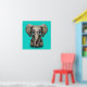 This cute design features a small baby elephant with large ears and deep black eyes. The baby animal is sitting with its front legs beside each other and is looking forward with its trunk hanging down. The over sized head and small body along with the details in the skin create a beautiful combination of a cartoon and realistic look. Reading glasses sit on the elephants nose which gives the pattern a playful look and intelligent feel. This unique design is an adorable example of this wonderful and majestic creature.