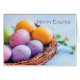 Cette carte bleue avec des oeufs de Pâques colorés pondus sur un nid est parfaite pour envoyer vos souhaits de Pâques à quelqu'un.