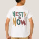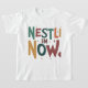 This comfy t-shirt design features the text "Nestle in Now" nestled inside a cozy illustration of a bird's nest. The text itself uses warm and inviting colours to create a sense of relaxation and comfort.