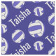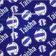 Sport personalized netball with blue stripe pattern sporting design fabric. White and blue netballs and dark blue background colour which can be changed if required. Ideal for netball players, coaches, and netball fans. Customize with your own choice of name, currently reads Taisha. Graphic art and designed by Sarah Trett for www.mylittleeden.com