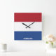 Netherlands National Flag Patriotic Square Wall Clock with the country flag in the national colours printed all over the clock. Country name is subtly integrated in the design on the bottom. Text is fully customizable using "Customize it!" feature. This charming design is the stunning gift and the great show piece on the wall . © CountriesOfTheWorld