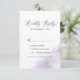 Cette carte RSVP de demande de chanson violet de lavage à l'aquarelle est parfaite pour un mariage moderne. Le design simple et classique présente une touche d'eau violette pastel lavande avec un style minimaliste et élégant. Créez votre liste d'invités mariages et votre liste de chansons de piste de danse tout à la fois ! Cette carte de réponse mariage demande aux invités s'ils pourront assister à votre mariage, et aussi quelle chanson les amènera à danser.