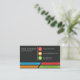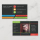 A business card design which can be used as a resume or CV at the same time. Space included for social media, so a good networking tool. Modern design. Every text and the profile image must be personalized. Motto may be deleted, left, or personalized. Both front and back of the card are important. One emphasizes the contacts, the other the experience and the skills.