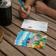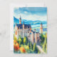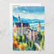 This postcard features a watercolor portrait of Neuschwanstein Castle in Germany.