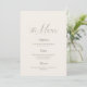 Refined and timeless, this neutral beige wedding menu is inspired by English countryside estates and classic hotel receptions.