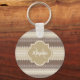 A neutral brown knit pattern basic keychain with lacy tan stripes that you can personalize by adding your name and monogrammed initial to. This is part of the Emperador and Warm Sand Knit Collection. Flat printed image NOT made with yarn or lace.