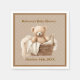 These cute Baby Shower napkins feature a precious neutral brown teddy bear sitting in a wicker basket filled with cozy blankets. A light tan lattice work covers the background. There's a template for you to put the Mom to Be's name and the date of the shower at the bottom.
