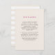 This elegant and trendy wedding guest information card features a neutral background, with subtle matching stripes on the back, for a glamourous desert look. You can use these cards to include information about your wedding reception, driving directions, accommodations, and anything else you need your guests to know. Striped art from Indie Grace Designs.