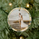 Neutral Floral Gold Frame First Christmas Photo Ceramic Ornament