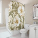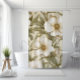 Elegant neutral shower curtain inspired by William Morris Pimpernel style, featuring beige, white, taupe, and soft green leaves—a bold yet sophisticated floral design for timeless bathroom decor.