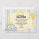 Neutral Baby Shower Invitation with a grey stripe background and a yellow floral frame. Baby Shower Invite features a sweet grey baby elephant sleeping. Mom to be will be thrilled with this shower invitation for a girl or a boy. Customize with your details.