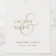 These stylish and minimal wedding labels feature couple monogram in script calligraphy, location and date in a neutral beige against a soft chic ivory background.