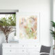 A modern art from the play of abstract brush strokes and details in mixed media inspired by spring, make this cool neutral minimalist poster with a soft pattern made of green, ivory, white, terracotta and grey a fascinating combination that gives a sense of freshness to your environment.