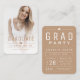 Modern and minimal typography graduation announcements with photo, fun graduation party invitation on the back in earth tone neutral tan, Custom it with your own photo and party information.