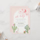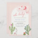 Cute baby girl baby shower invitation, feature watercolor cactus, succulent, baby toy alpaca, moon, star and bunny. Oh baby, baby in bloom.