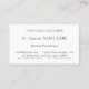 This humble business card design features a professional’s name, a medical facility name, a job role title, and contact information that are customizable. Business cards such as these might be used by a professional such as a dentist, a family physician, or a general practitioner.