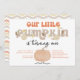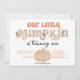 Celebrate your little one’s first birthday with this playful and gender-neutral pumpkin-themed invitation! Featuring whimsical typography, soft watercolor pumpkins, cheerful florals, and a warm fall colour palette, this design is perfect for boys, girls, or gender-neutral parties. The charming chevron backer adds a fun finishing touch. Customize with your party details to create a sweet and stylish keepsake for your autumn celebration.