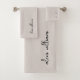 Neutral Taupe Minimalist Script Signature Monogram Bath Towel Set