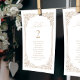 Elegant vintage ornamental frame border design with stylish script in earth tone gold beige colour, simple and classic, great wedding seating chart table cards for modern classic wedding, romantic vintage wedding, and formal traditional wedding.