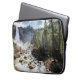 The sleeve is made of nice feeling material and seems very durable. I'm not sure how easy it'll be to clean, but the construction seems sound and the fabric is quick thick. I also like the double zipper. The printing is lovely and appears durable. The white on black contrast is nice, and the design very elegant.