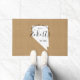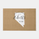 Modern farmhouse personalized doormat with your family name inside your state map. Faux burlap canvas texture background. Click Customize It to add your own text and images and create a unique one of a kind design!